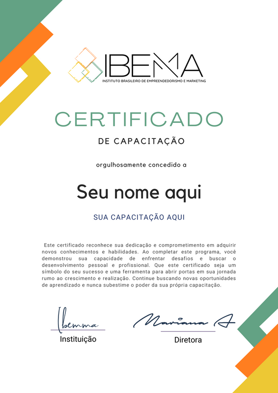 Todos os nossos cursos asseguram certificação oficial concedida pelo Ibemma - Instituto Brasileiro de Empreendedorismo e Marketing.